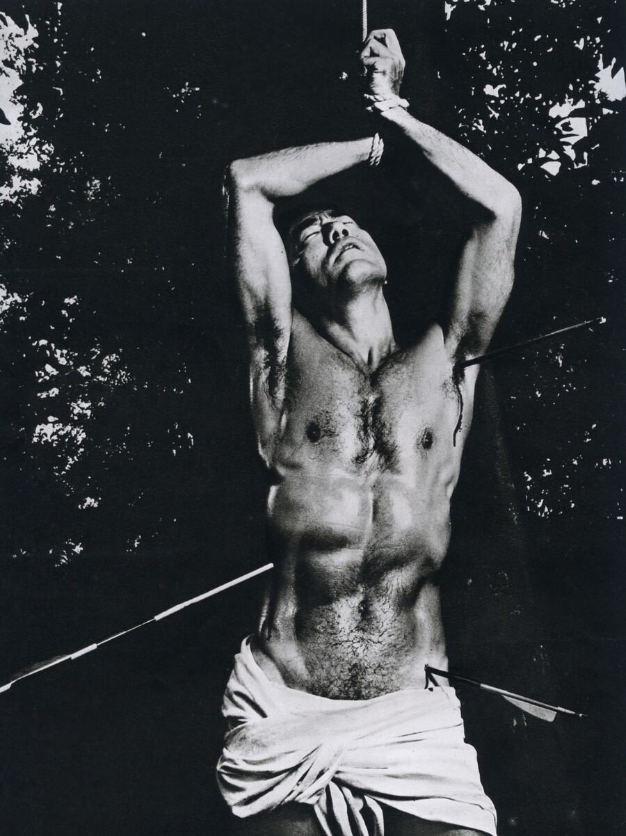 Юкио Мисима позирует в образе Святого Себастьяна (1970), Фотограф Кисин Синояма