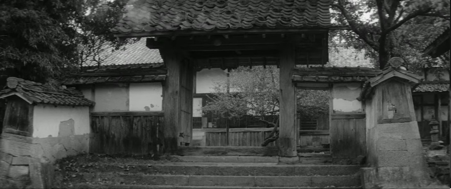 Большинство кадров выстроены фронтально, строго по осевым линиям. Персонажи расположены центрально, как на иконе или в сцене религиозного театра. Пространство кажется плоским, как сцена: матрас, ширмы, мечи — всё расположено так, чтобы создавать геометрическую упорядоченность. Эта симметрия подчёркивает неизбежность, «предзаданность» судьбы героя и ощущение обряда, от которого нельзя отступить.