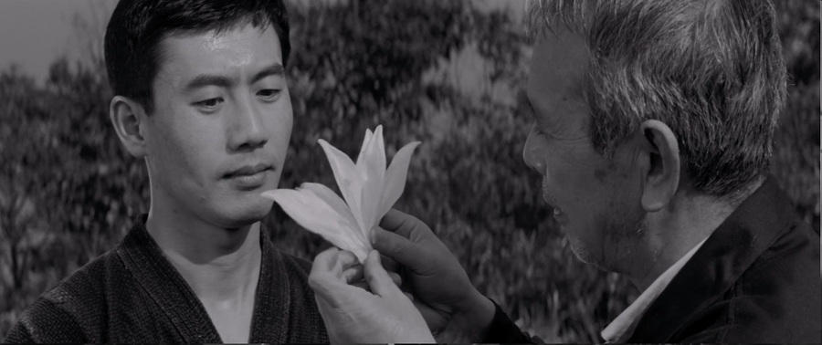 Еще одна примечательная сцена фильма и, пожалуй, самая поэтичная — момент, когда старик утирает кровь с лица Кокубу белой лилией после того, как тот чуть не убил голубя. Этот эпизод несет в себе сразу несколько важных смыслов.