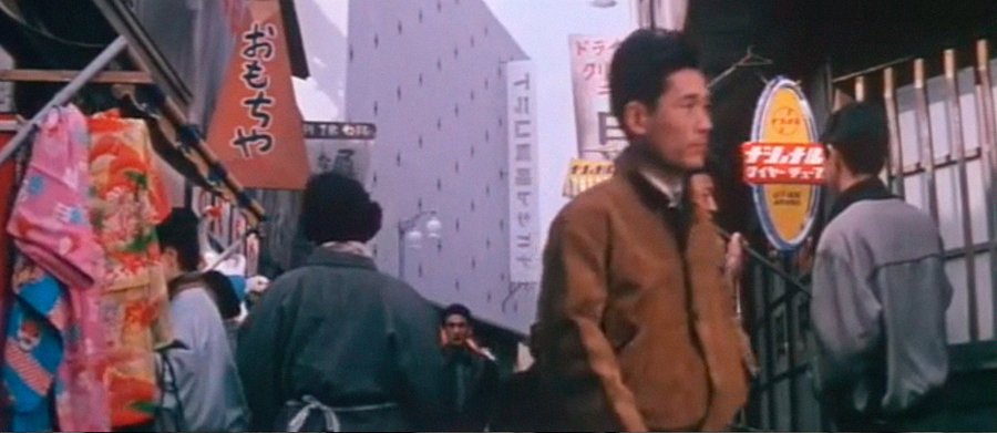 Камера активно движется — наезды, следящие съёмки, быстрые переключения планов. В сочетании с контрастными цветами это создаёт ощущение импульсивности и нервной энергии, характерной для стиля Масумуры. Динамика изображения подчёркивает темп жизни героя, который словно всё время несётся вперёд, не успевая подумать.