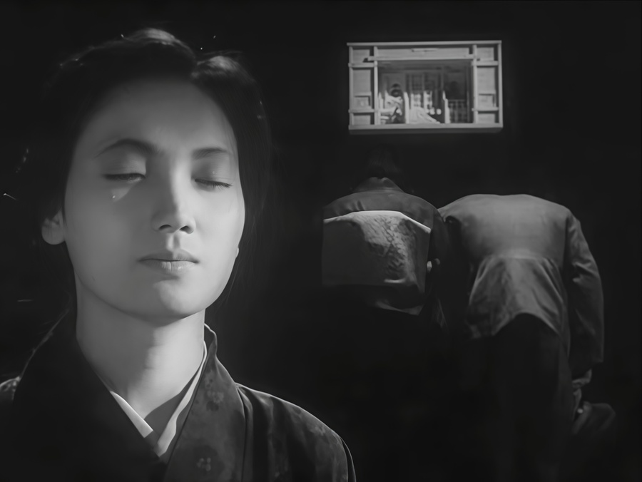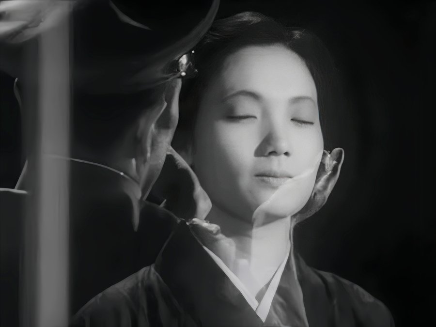 В середине фильма — в моменты наивысшего эмоционального разогрева — цвет возникает как вторжение внутреннего мира Эцуко в объективную реальность. Это визуализация сильнейшей страсти, её эмоции выходят из-под контроля, и внутреннее становится ярче и реальнее внешнего мира. Цвет резко контрастирует с монохромной бытовой средой, показывая вторжение чувственности в пространство строгой морали.