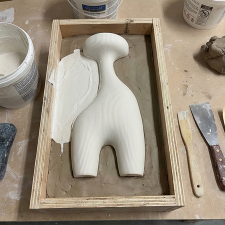 Рекомендации: — линии разъёма прятать в менее заметных зонах (внутренние стороны «ног», «тыльная» зона); — предусмотреть ключи совмещения и внешнюю «рубашку/кожух» (гипс/пластик) при необходимости жёсткости; — литники/вентканалы размещать так, чтобы не портить «лицо» и фактуру.